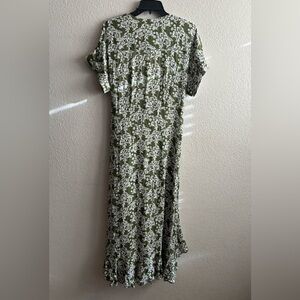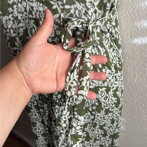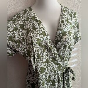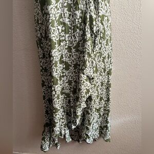 Papillon Wrap Green and White Ruffled Midi Dress S