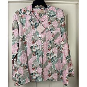 Papinelle Pajama Top Womens Size M Pink Floral Print Button Closure Pocket NEW. Condition is new with tags.