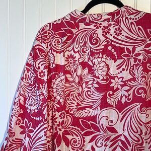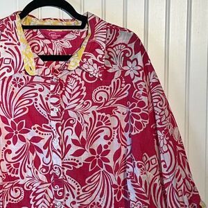 Pappagallo 3/4 Sleeve Button Up Top Women 3X Pink Yellow Tropical Peekaboo Cuffs