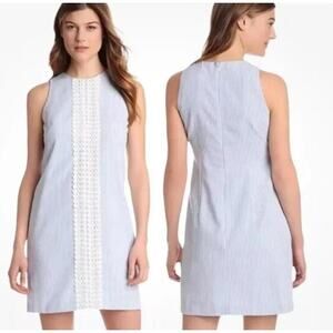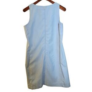 Women's Pappagallo Blue & White Seersucker Preppy Nautical Cottagecore Dress with Lace