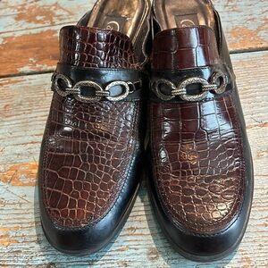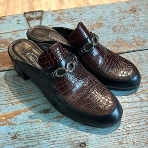 Pappagallo Brown Croc-Embossed Leather Block Heel Mules – Size 9M