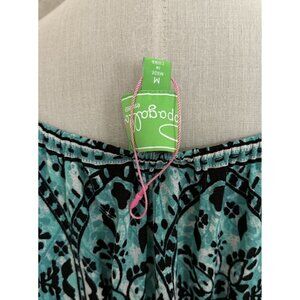 Pappagallo Colorful Boho Peasant Tunic Blouse Top Rayon Tie Neck Tassels Size M
