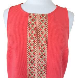 Pappagallo Coral Sleeveless Shift Dress Size Medium Gold Lace Preppy