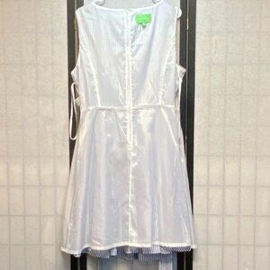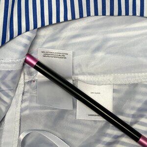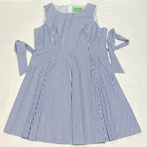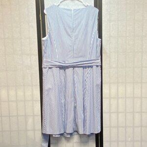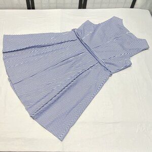 Pappagallo Fit & Flare Pleated Midi Dress Lined Stripe Blue White 16 Sleeveless