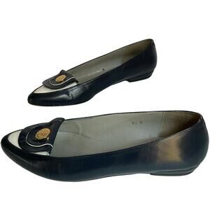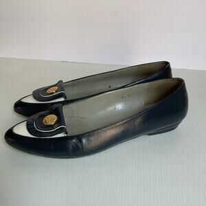 Step into timeless elegance with these vintage Pappagallo flats, made in Spain. Crafted from genuine navy blue leather, they feature a chic gold-tone anchor medallion at the toe for a classic nautical touch. Size 8.5M, with a modest low heel and soft leather lining for all-day comfort. A rare find for lovers of vintage style and quality craftsmanship.