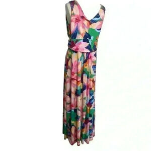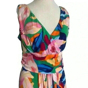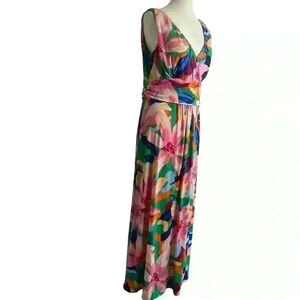 Pappagallo, Kelley Green&multi-floral, flowy, stretch,Tropical Maxi dress-SZ-L