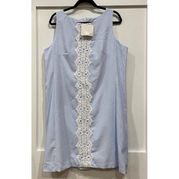 Pappagallo Seersucker Lace Front Shift Dress - Size 16 - NWT