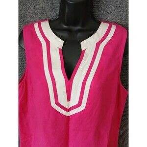 Pappagallo Shift Dress Pink Women's Size 12 Sleeveless Linen Blend Knee Length