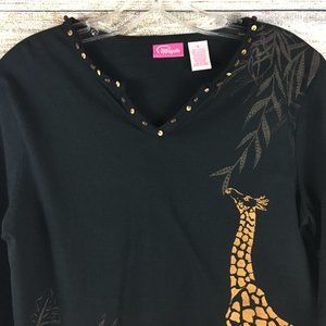 Pappagallo Top Giraffe Animal Print Beaded Pullover 3/4 Sleeve