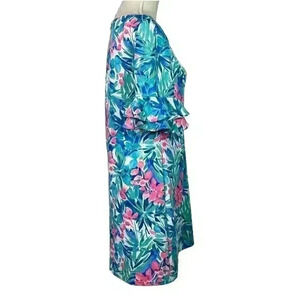 Pappagallo Tropical Floral Ruffle Sleeve Dress Size Medium