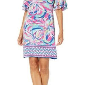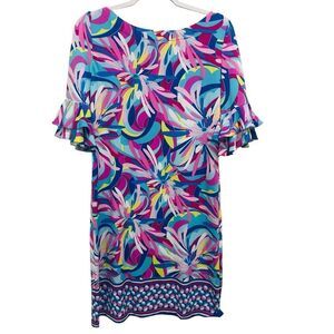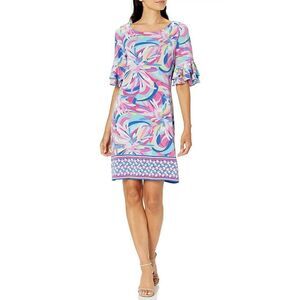 Pappagallo Victoria Preppy Pastel Abstract Print 3/4 Ruffle Sleeve Shift Dress