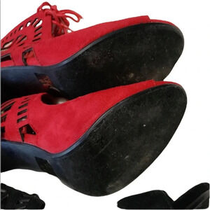 Paprika 2 Pairs Laser Cut Detail Lace up Heels Size 8.5 Approx 4” heel