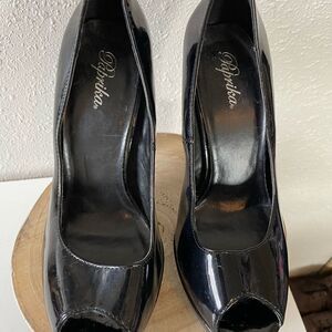 Paprika Black Open Toe Heels Size 8 EUC