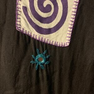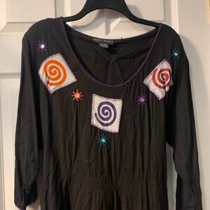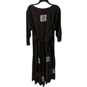 Papy Boez Women's Art to Wear Midi Dress One Size Black Embroidered Mirrors Boho