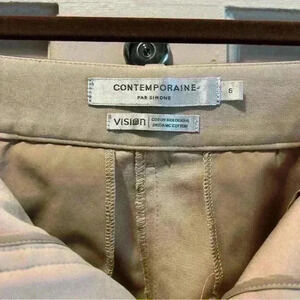 Contemporaine Par Simone Vision Organic Cotton Cargo Skirt Women's size 6. There are two slash pockets on either hip area as well as on the back of the skirt. The pockets are sewn shut but the seam can be cut / popped and it will open all 4 pockets. Both cargo pockets are also stitched shut which can be snipped to open if wanted. Skirt closes with two hook & eye latches and one button.
