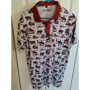 Elevate your golf wardrobe with this standout ParHopper golf polo, size L. Designed for golfers who want to combine performance with personality, this shirt features the Whiskey of the West brand.