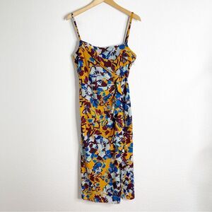 Parabal Gurung Dress Mustard Blue Floral Midi Size 10