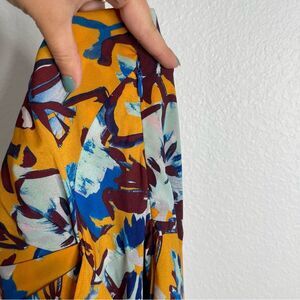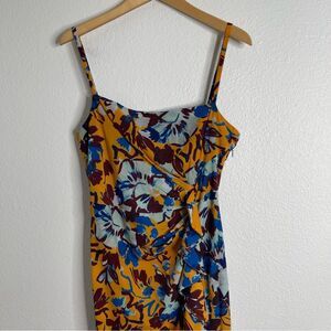 Parabal Gurung Dress Mustard Blue Floral Midi Size 8
