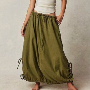 Free People parachute skirt with cargo pockets, drawstring waist, and drawstrings at both side seams to adjust the hem as desired. Item for sale is white -- the green photos are product photos to better show the skirt.