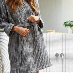 Parachute Gender Inclusive Waffle Knit Cotton Robe Gray Size Small Spa Bath EUC