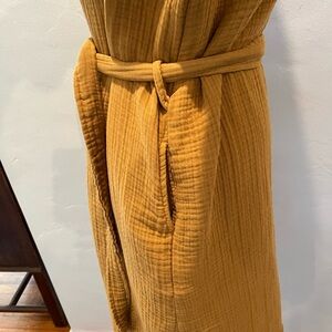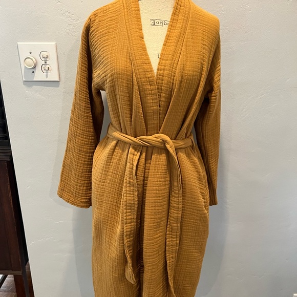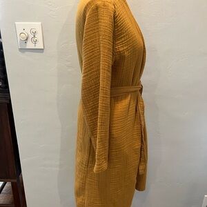 Elegant golden robe with a textured finish. Includes a matching belt for comfort. Pockets