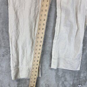 Good condition - Light wear with small faint marks/spots noted as shown in photos. Typical linen wrinkling from storage. Elastic waistband and drawstring intact; no holes or tears observed.
