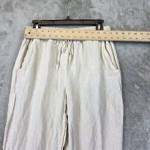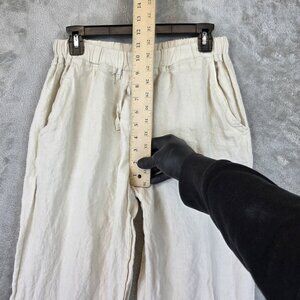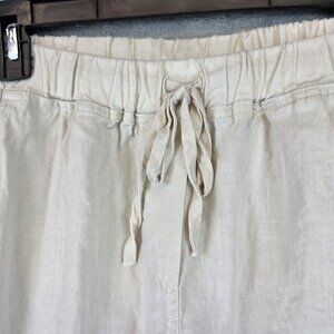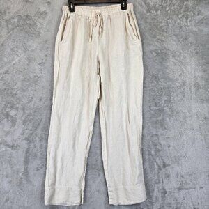 Parachute Linen Pants Womens Small Beige Drawstring Elastic Waist Pockets Lounge