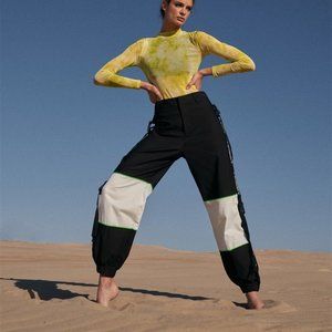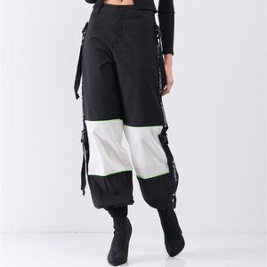 High waisted with elasticized back waistband with a hook&eye and zip-up closures