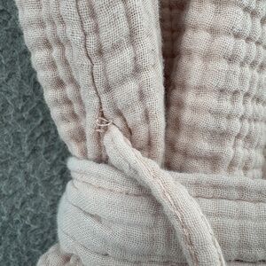 - From Parachute: “ Lounge like you mean it. Soft, light and luxurious, this super comfy robe features fluffy 4-ply gauze, a snug waist tie and two hidden side pockets. Made from premium 100% long-staple cotton and designed to have a relaxed, comfortable fit.”