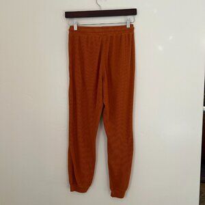 Cozy Jogger | Archive Cozy Waffle in color Labradoodle. Pretty pumpkin orange color. Waffle knit. Thick waistband and cuffed hems make for jogger. Tie waist. Functional hip pockets.
