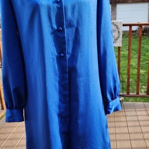 Parade New York Royal Blue Button Down Long Sleeves Shirt Dress Fits S