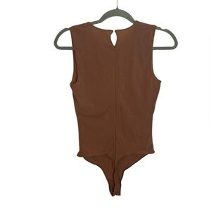 Pre owned like new. No signs of wear. Super cute neutral, tan mesh thong bodysuit. Great closet staple and great layering piece. Womens size small.