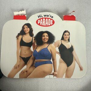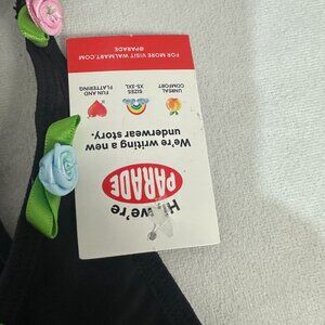 Parade Two Piece Black Bra & Thong Lingerie Small Floral Embellished Stretch Fit