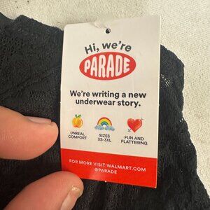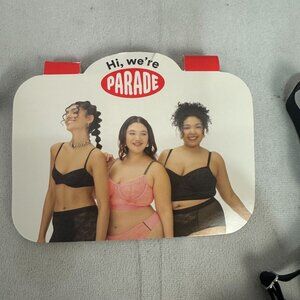 This Parade lace bra features underwire support, a lightweight structure, and a delicate lace overlay for elegance. Adjustable straps offer a customizable, comfortable fit for all-day use, while the unlined design adds to its breathable feel. Size Small for an excellent fit with aesthetic appeal.
