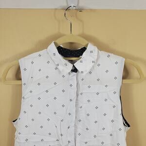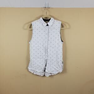 New with tags. Size extra small. Black star print on white background. Sleeveless Button-Up Shirt. Covered buttons.