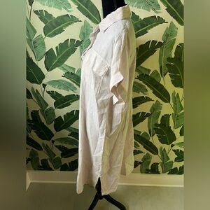 Paradise 100% Italian Linen Beige Button Front Short Sleeve Midi Dress M