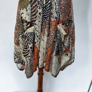 Paradise Asymmetrical Brown Red Orange Turquoise Abstract PrintDuster Cover Up