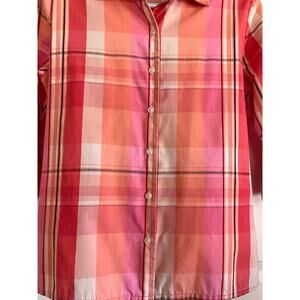 Paradise Bay Petite Size 10 Button Down Shirt Plaid Coral Pink