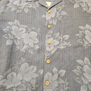 Paradise Blue Hawaiian Shirt 100% Silk Floral Beach Blue Button Up Mens Medium