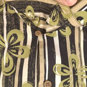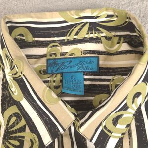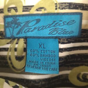Paradise Blue Hawaiian Shirt Mens XL Floral Striped Button Down Cotton Bamboo