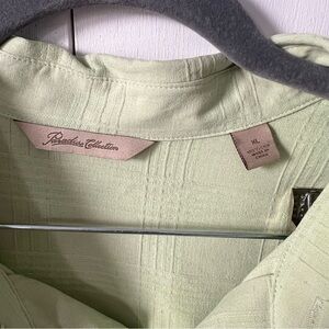 Paradise Collection 100% Silk Short Sleeve Button-Up Shirt – Light Green, XL