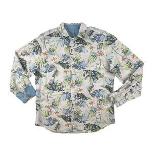Paradise Collection Linen Cotton Shirt Mens Medium White Tropical Palm Print Button Up Long Sleeve Beachwear