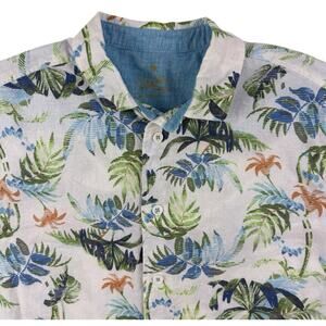 Paradise Collection Linen Cotton Shirt Mens Medium White Tropical Palm Button Up