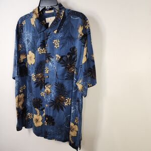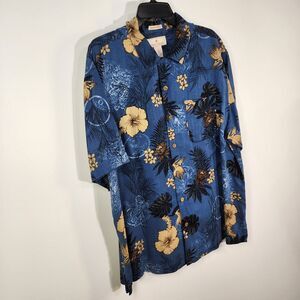 Paradise Collection Men Shirt Size XL Blue Button Up 100% Washable Silk Hawaiian