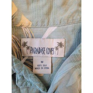 Paradise Coves Men's Tropical 100% Silk Button Down Shirt Green Hawaiian Size M