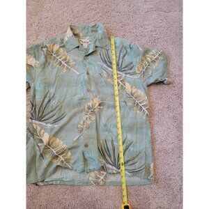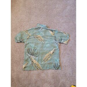 Paradise Coves Men's Tropical 100% Silk Button Down Shirt Green Hawaiian Size M