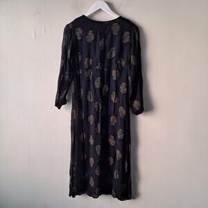 Paradise East 100% Rayon Black & Gold Indian Print Button Transparent Cape Jacket - Size S (traditional kathana hand block floral)