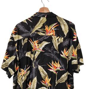 Paradise Found 2X Black Bird of Paradise Hawaiian Shirt Aloha Vintage 1980s