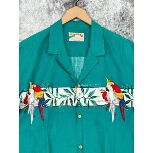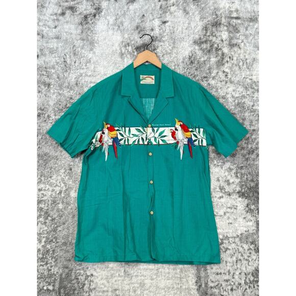 Paradise Found Green Short Sleeve Parrot Casual Button Shirt Size L Large