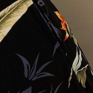 Size x-small and runs loose fitting best fits a size small. Paradise Found made in Hawaii tropical button down midi dress. The dress has pockets and a tie back as well. There is some fading throughout.